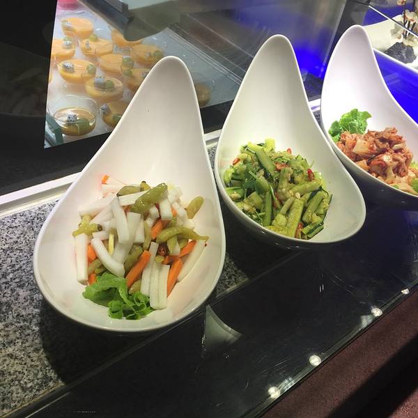 圣琼美食海鲜自助餐厅位于广东省珠海市吉大国际会议中心的附近,可以选择乘坐公交车到吉大总站下车然后步行大概10分钟左右就到达了,其实也挺近的,附近的商铺比较少,周围也算比较安静的,因为我们当时去的比较早,那里的营业时间是17点30分才开始,当时开始以后,我们就去前台交钱,然后还需要每桌给50元的押金,但是那时候我们没有50元,给了100元,前台的服务员就直接收我们100元的押金,进去以后我们找了位置坐下来就开始去拿食物,哪里的美食真的挺多的,只需要138元就可以享受2小时用餐,哪里有毛蟹、大虾、鱼生、熟食、寿司、水果、红酒、雪糕等,我们首先拿了几份鱼生,鱼生真的比较新鲜,而且还是现场切,可以看到整个切制的过程,还有花茶喝,有几种不同的茶提供给我们自己泡,哪里还有小龙虾吃,不过唯一一点不足的就是哪里的服务员太少了,两个服务员来服务几十张桌子,建议可以应该增加多几位服务员,主要是还有品牌雪糕哈根达斯和明治,不过明治的味道只有一种就是榴莲味,哪里还有新鲜煎好的牛排。 以前去吃的自助餐大多食物都是不新鲜的,而且比较好一点的还要限量,而这家圣琼就不需要限制拿多少,只要自己能吃得完不浪费就可以了,总体来说还算不错的。