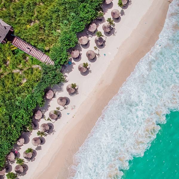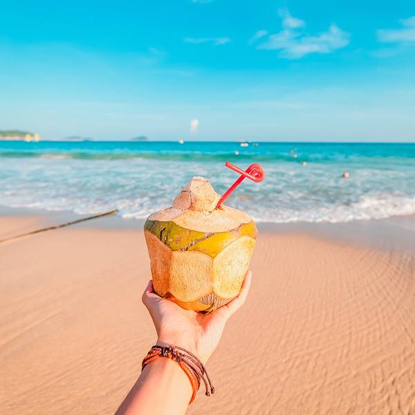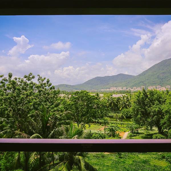 由于我是第一次来 三亚 ,在 海棠湾 的亚特兰蒂斯待了三天,如果除了 海棠湾 不去别的地方走走,不免觉得有些遗憾,于是我又在 亚龙湾 的红树林酒店定了一晚,这样可以顺便在 亚龙湾 和市区逛逛~来 三亚 前天气预报天天报告台风下大雨,没想到来了之后每天天气都这么完美,幸运!忍不住在酒店放了飞机,航拍一下~红树林的房间热带风情十足,坐在阳台的沙发椅上向外眺望出去,风景美得好像一副画一样~等到傍晚紫外线没那么强烈了的时候,走出房间,买了个椰子,在海滩边坐下,等一场夕阳,好惬意呀~