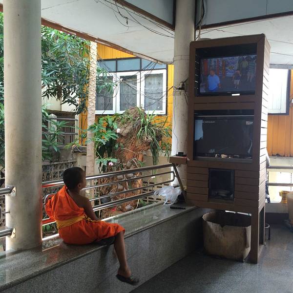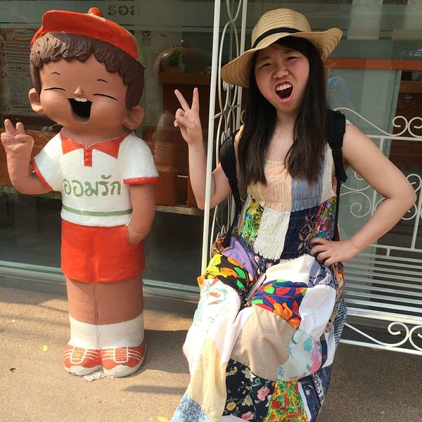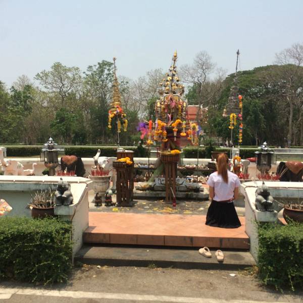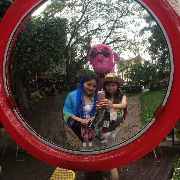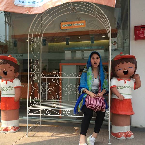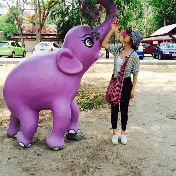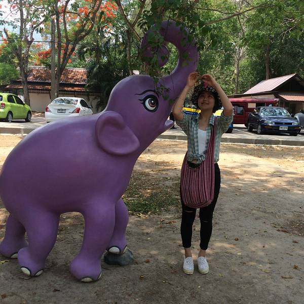 出发去素贴山了。双条车似乎是40泰铢。 登上素贴山可以看清迈全景,我们是坐缆车上去的,途中碰到了一个北京姐姐,就和她一起玩了。姐姐30出头,见多识广,经常单独旅行,和她在一起,听到了不少旅行趣事和关于泰国的文化知识,真是佩服这样的人。 在素贴山上,因雾重,我们并没有看到全景,倒是沿途看到了各种色彩的三角梅,真是一种让人看了心情也会怒放的花。素贴山下来,坐双条车去了清迈大学,在附近吃了午饭。这个青木瓜沙拉真的是太酸爽了,真的需要来10盘,我们吃完一盘又点了一盘。但其他菜实在味道一般,尤其是那个咖喱汤,完全没有咖喱味,好想吃那种贼浓稠的咖喱。糯米倒是口感很好,但还是比较期待回清迈吃更正宗的芒果糯米饭。 清迈大学不能自由游玩,只能坐他们的观光巴士。车上会有广播讲解,大概30分钟。和我们搭一辆车的是3个被太阳晒伤满脸涂满痱子粉的大男生,哈哈哈哈,就是觉得很好笑。而且他们好会摆拍,被他们的摆拍姿势看醉了,话说现在的男子都这么会凹造型吗,哈哈哈太可爱的人。 下午逛附近的宁曼路。宁曼路比较像厦门的风格,也是各种小清新小情调的店。 其实逛宁曼路主要是想找一家餐厅“蝶豆花”,动用导航、问路、电话都找不到,网上给的地址似乎不准,后来还下起了大雨,和机器侠跑到一家网吧门外避雨,顺便向里面的工作人员打听这家店,店员很热心地帮我们找,还留我们进去避雨。雨停后我们又开始觅食,这次碰到个保安大叔,大叔更是热心地直接带着我们去找,找到的时候发现原来网上地址错了,应该是9road,不是11road。找到的时候这家店居然4点多就任性地打烊了,我们却不觉得遗憾,因为找店的途中看了许多美景和新鲜事物,还有几个好心人帮我们找店,感觉好温暖撒,美食就就明天再来战好啦!