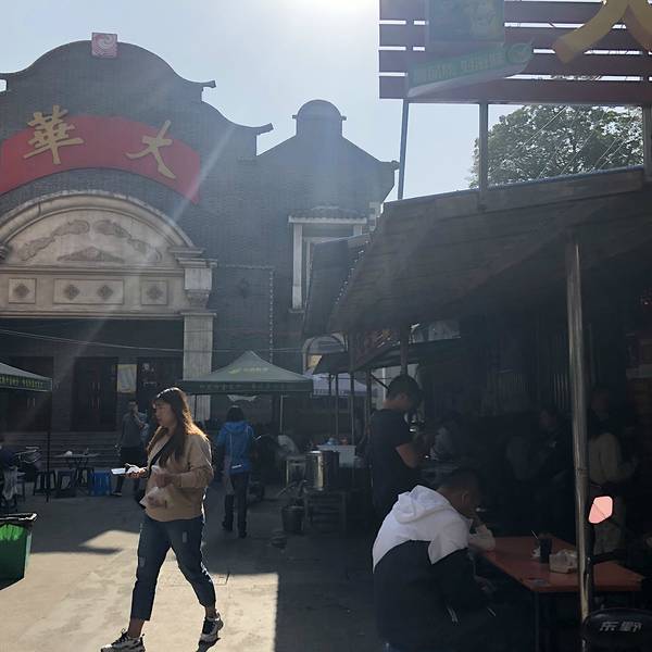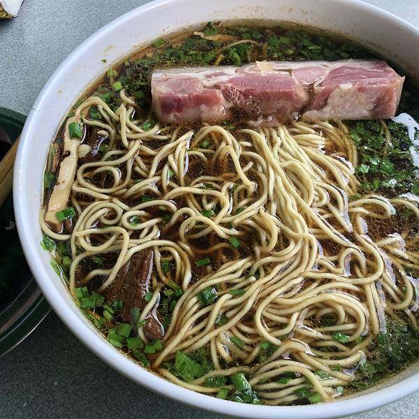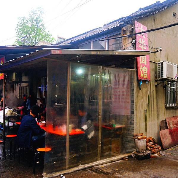 锅盖面,也称镇江小刀面,是中国十大名面之一,被誉为“江南的天下第一面”,是江苏省镇江市的一道地方特色传统美食。大华面馆,网上好多人推荐,作为不知底细的外地人,也只能参照前人的信息试吃了,估计不能算是第一,也可以算是锅盖面的代表吧。牛肉面加一块肴肉这个窗口负责收款和配料。牛肉面加一块肴肉的配料自己拿着配好的料去灶台加面。面馆是在一个巷子里面,这大华的门面看着像个老式电影院的门面。右侧这个棚下是大华面馆。吃面的人真的挺多,我去的时候都一点半了,已经过了饭点,依然排队交钱取面。第一次在镇江吃锅盖面,感觉还是好吃的,肴肉很出彩。