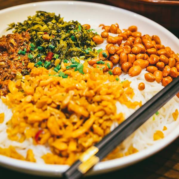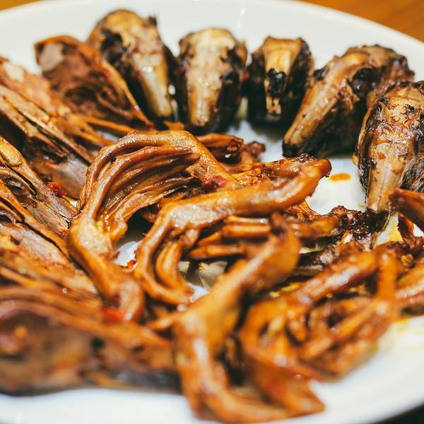 听龙游的朋友说 一瓶鲜红的辣椒酱 一笼白嫩的发糕 一捆干瘪的笋干 都是至宝 我想这就是龙游的风味吧在民居苑的聚宝古街东面 就开设了一家地道龙游美食餐厅“龙游风味” 店里有着几十种地道的龙游风味小吃、菜肴: 葱饼、汤圆、猪肠、芋粽、沐尘清水鱼、红烧乌猪肉……【龙游葱花馒头】 吃过各式各样馅的馒头 荤的素的 却还没有见过像龙游这种包到“一半”的葱花馒头 内陷多为萝卜 鲜笋 猪肉 葱花包裹制成【龙游米粉干】 龙游的粉干是由米粉做成的 吃法也和以往我遇到的粉干不同 它的粉干更加粗 而且雪白还有韧性 可以用来炒着吃 也可以伴着吃 龙游人把它叫做“水了醋” 味道爽滑鲜美【鸭掌】与【鸭头】 原本这是独立的两种美食 而龙游风味将它合二为一 同时能够吃到鲜美的鸭头和鸭掌 是一件多么幸福的事情 鸭掌内含有丰富的胶原蛋白 小小的鸭掌营养含量媲美于熊掌 掌是鸭子的运动器官 所以筋多皮厚没有肉 让人品尝中更有嚼劲 吃起来甚至还会有鲜汁 非常的适合不吃肥肉的人食用 而鸭头是龙游“三头一掌之一绝” 它最大的特点就是辣 咸 还有鲜 瞬间安利一个当地的吃法 就是辣辣的鸭头配上一瓶啤酒 味道会得到一个质的飞跃【肉圆】 龙游的肉圆也叫做“山粉” 它是有红薯淀粉还有芋艿制作而成 肉圆的形状不是一个标准的球形 而且表明凹凸不平 和“狮子头”有一丝丝的相似度 可炒 可汤 可煮 并且烹饪的方式也很多样【葱饼】 龙游的葱饼拥有一个非常悠久的历史 早在西汉时期 就出现了它的前身“胡饼” 最终由“胡饼”演变成今日的葱饼 而龙游葱饼出名出众的原因 就在于这个“葱”上面 它是一种生存在沙土地上独特的葱 被叫做“狗细葱” 这种葱 不仅香味更加浓烈 而且还是天然的保健食材 与龙游的饼搭配后烹饪出人间美味 流传至今【龙游发糕】 在明清时期 就是以一种贡品的形式存在 最早的时候 仅为白色 白如璞玉 寓意为“福高” 而现在出现了各式各样新奇的做法 颜色也变得多样化