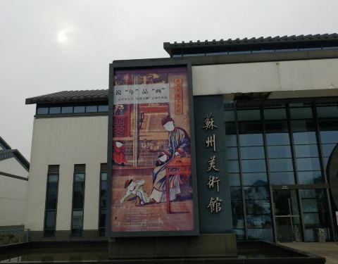 从丝绸博物馆过去美术馆也是两三分钟的时间的,基本上可以就是连在一块的,参观到一个的关苏州的一个本地的画展,比较新和博物馆,人不算多,可以看看的。