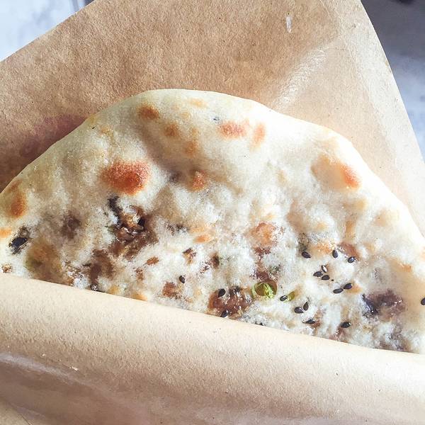 明明午饭吃的那么饱,看到带肉的烧饼又走不动步了,赶紧买了个,8块钱