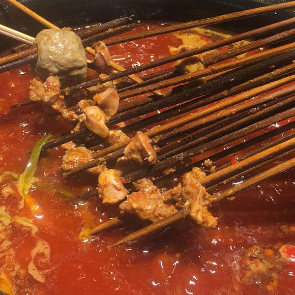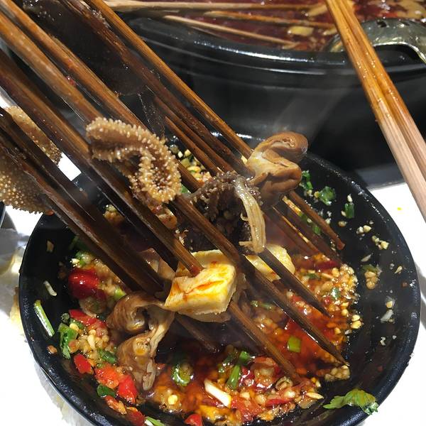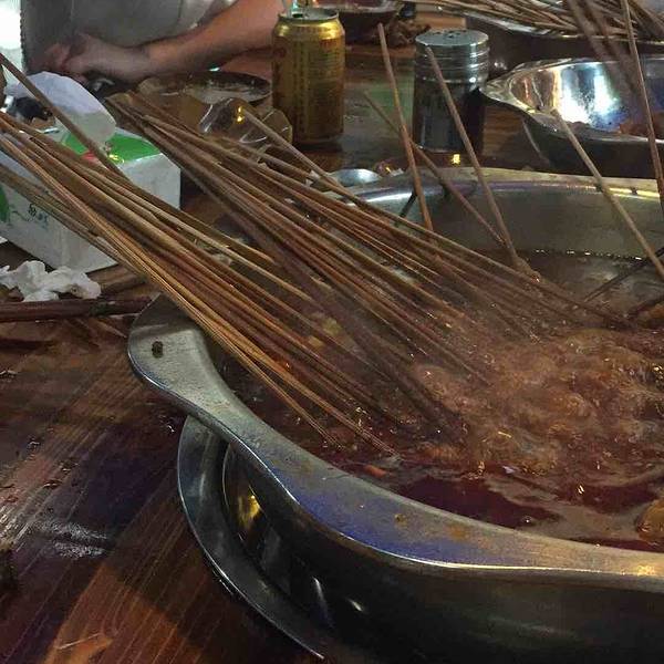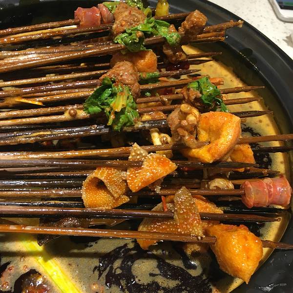 算是成都最有名的串串了,我们就随便找了一家最近的,生意超好的, 味道很好吃哒,而且很便宜。这家的串串是称重的,不是数签的。