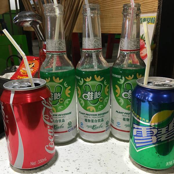 吃饭花了180。冰很多。这次不喝酒了,喝饮料,这个唯怡和我们宏宝莱一样,我们宏宝莱2块,这边4块