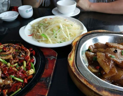 红烧肉,肥而不腻,非常非常好吃,不愧是招牌菜 就是真的贼贵,小份59就6小块!! 铁板牛肉有点辣,很下饭,醋溜土豆丝也不错!!