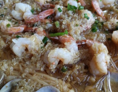 网上搜索到附近的饭店,干净整洁,特色椰子饭香糯清甜,忍不住把椰子肉也一并吃了,那份“虾贝争鲜”是用蒜蓉粉丝坐的加了些金针菇,味道真心不错,当然海南特色野菜革命菜也一定要点上的,俩人吃得饱饱。