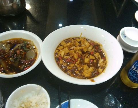 麻婆豆腐味道不怎么样,应该不是卤水的;川北凉粉挺好吃