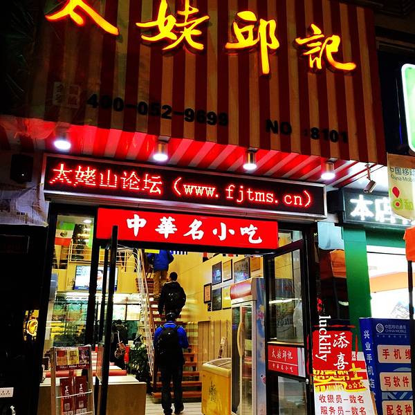 再一次福鼎之旅同样令我喜悦的是:遇见了太姥邱记!太姥山镇蛮小的,感觉横竖几条街,找这家店也很容易,玉池南路193号,店面比较醒目,尤其到了夜里,门面很亮眼。坦白说这些天在福鼎玩基本上都是以吃海鲜餐为主,正好有点吃腻的感觉,来些当地小吃换换口味,吃个小清新啦。 店面打理的很干净亮堂,明码标价,进门的一排冰柜里还有速冻的生食可以外卖,冰柜上方是太姥邱记历年获得的各种餐饮奖牌。 这家独有福鼎特色的小吃店几乎囊含了所有当地的名小吃:小笼珍珠包、太姥百年肉燕、深海鳘鱼片、鱼丸、牛肉丸、福鼎肉片、米线、木桶饭。太姥邱记在福鼎市区和太姥山镇上均有连锁店,店面的装修十分的整洁、明快,是一家品质优秀的中式餐饮连锁,其品牌定位和店面风格在当地小吃界应该是首屈一指的。小笼珍珠包这小笼珍珠包长的可真是好看,与我们江浙沪一带的小笼外形相似,却要迷你不少,一口一个是正好的,这珍珠小笼包据店员介绍,都是采用了猪后腿的瘦肉和三线 肉为馅,精粉为皮,爆火蒸制而成。皮薄馅靓,入口甚为鲜香,尤其喜欢它出笼在粽叶上的样子,又凭添一份叶香。深海鳘鱼片 这深海鳘鱼片色泽如瓷,入口很有弹性,特别的鲜,虽然说鱼丸吃过不少,但是这太姥邱记的深海鳘鱼片是货真价实的,能够感觉鱼料的成份占了很高的比重,鱼肉 的味道很足。据店员介绍,这深海鳘鱼片选料都是8斤以上的深海鳘鱼,难怪我刁钻的舌尖一入口就感觉地道了。太姥百年肉燕 肉燕是福闽特有的美食,也是我的最爱。太姥百年肉燕圆头散尾,形同飞燕,入眼如润玉翡翠,入口则滑嫩清脆,来到福鼎是必不可以错过的!牛肉丸福鼎手打肉片 牛肉片(丸)和手打肉片选用是的上好的牛肉或是猪肉,与淀粉以1:0.7的比例,纯手工打制出来,它取料精,工艺巧,味独特。深得人们称赞。配上够劲道的用福鼎本地的米醋与黄辣椒调合出来的酸辣底汤,再撒上些许香菜,那味道才叫个正宗地道! 又是匆匆一遇,一次性可以吃全这些福鼎最有代表性的小吃,感觉还是很知足的,太姥邱记的用料真的很厚道,于是推荐给各位去福鼎玩的朋友……
