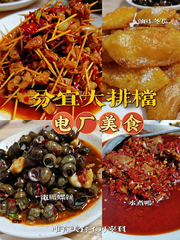 分宜的夜宵大排档名不虚传,想要体验80年代的风景,必须来的地方就是分宜美食街。 [薄荷]环境: 大排档环境自然不咋地,但吃饭的人挺多的,卫生也不错。 [服务铃]服务: 小本经营,服务自然还可以的。 🍹菜品: 地道的菜绝对是绝绝子 |螺蛳^江西的螺丝名不虚传,口味棒。 |肉串^牙签肉赞赞的。 |冬瓜饼^我的最爱炸冬瓜,特别香。 |鸭子^水煮鸭,辣到人生赞。