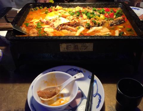 - 不过肉质很筋道,味道不错。中午饭点时间人太多了,没时间排队就去吧台位置对着烤鱼炉吃的