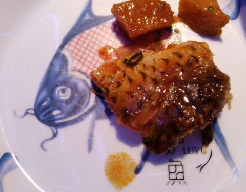 中午饭点时间人太多了,没时间排队就去吧台位置对着烤鱼炉吃的。一时间分不清是烤鱼呢还是烤我呢哈哈,烤鱼常有,与鱼同烤不常有,一生一次的别致体验。不过肉质很筋道,味道不错。