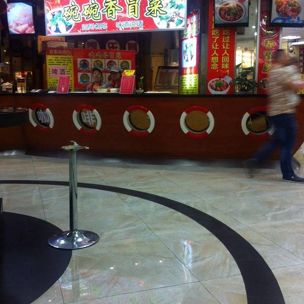 碗碗香冒菜是我们在江苏路的真不同美食广场吃的最多的一家了,价格不贵,可选择性还多。 交通:在江苏路口,坐5.4路公交车在文化广场下车,往江苏路走,约300米就能看到,坐18路28路,在阳光花园站下车,往前走150米就能看到这家店了。就餐的地方还有滑滑梯,小朋友比较喜欢的地方了。这样也能让父母能安心的吃饭了!需要现在前台充值一张卡,然后可以在整个美食城都可以使用,然后再到档口消费,一份千张冒菜8元,有微辣,麻辣和三鲜三种口味,所以完全不用担心自己接受不了传统四川冒菜的火辣了。 个人认为千张冒菜和里脊冒菜是最好吃的,在这里也是点的最多的了。 点一份冒菜会免费赠送小菜一份,有酸豇豆和凉拌藕丁,有的时候是韩式泡菜,都是比较下饭的小菜。 今天去点餐的时候,点菜的小妹说,现在还可以送餐上门哦。觉得也是很贴心的服务了。