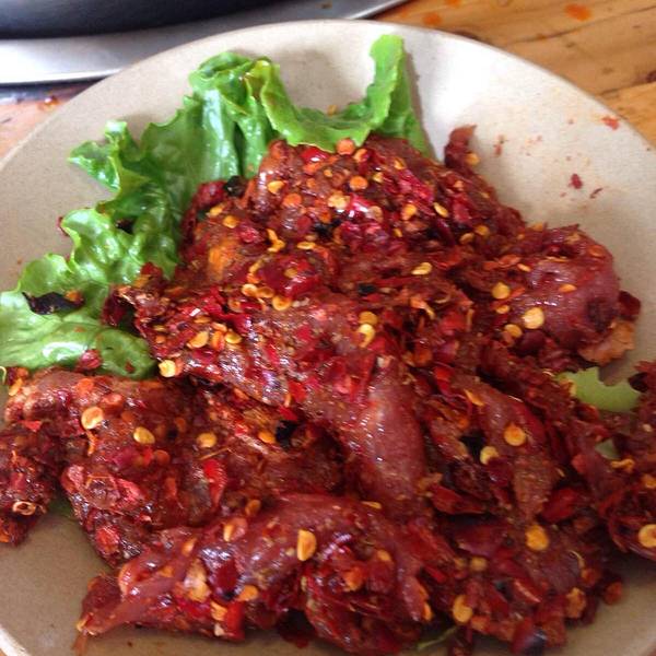 看着很辣吧,其实不辣,非常好吃,要了两盘,但不能涮老了,比北京杨家的干辣不知强多少倍