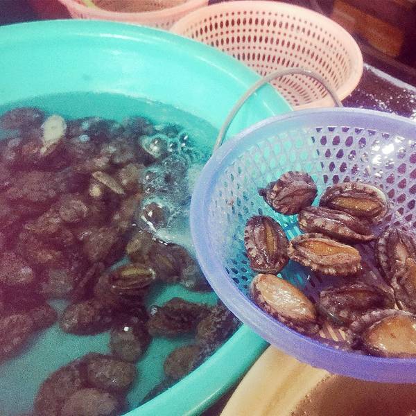 晚上去海鲜市场采购了一番,这里还是挺热闹的,各种不认识的生猛海鲜。自己一个人也不知道吃点什么,看看别人买什么,感兴趣的就买点,最后还买了一瓶黄酒。