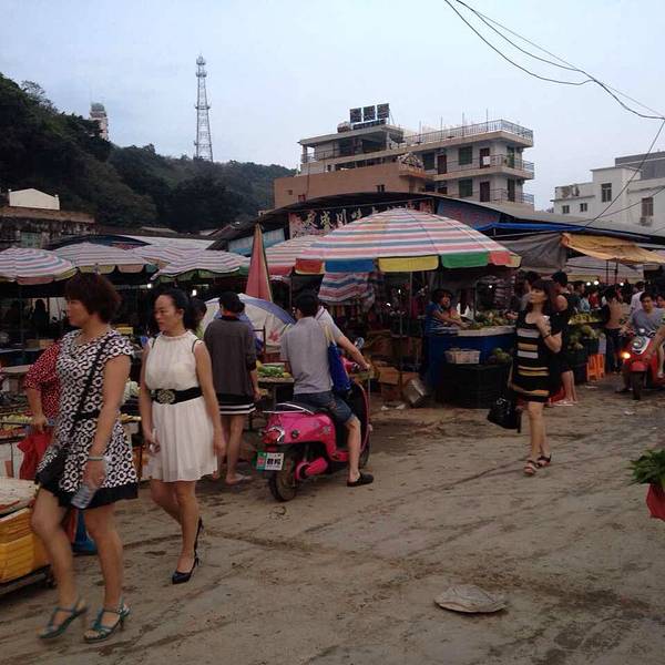下山后穿过这个海鲜市场,一片海滩跃然眼前