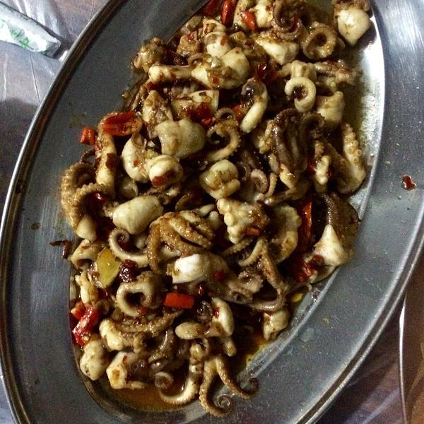 从石螺口来到圆盘这里 然后经过下山的盘山路赶往南湾镇 天慢慢黑了 听着小歌 吹着小风 看着不远处渔火点点的南湾镇 顿时感觉到了浓浓的生活气息 海鲜市场在南湾镇靠里面的位置 卖海鲜的大部分是渔民吧 都是很新鲜的海鲜产品 看过我厦门游记的可能知道 其实我不喜欢吃海鲜 但是来到了海岛 不吃点海鲜也太说不过去了吧 于是我买了点皮皮虾 花甲 大约都是40元/斤 然后找了个店进行加工 加工费每个菜15元 不得不说 真的很好吃啊 以至于我都忘了拍照了。。。 只有一张海鲜炒饭拍了
