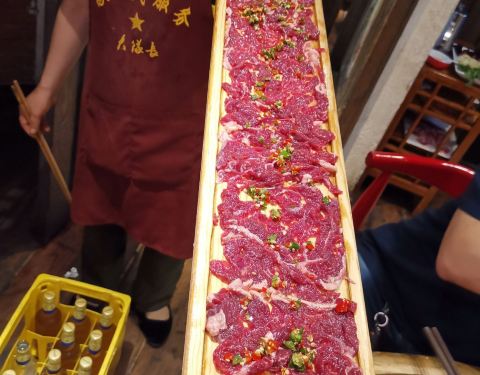 就像无数重庆火锅店一样,大队长火锅也用极致诱人的气味吸引着无数路人。 大队长火锅,顾名思义是上世纪六十年代风格,店内环境宽敞明亮,装潢风格之中不乏烟火气,这红红火火的配色加上店员热情的服务,用餐体验...就像无数重庆火锅店一样,大队长火锅也用极致诱人的气味吸引着无数路人。 大队长火锅,顾名思义是上世纪六十年代风格,店内环境宽敞明亮,装潢风格之中不乏烟火气,这红红火火的配色加上店员热情的服务,用餐体验正如餐厅墙上那句“安逸得很”~ 一进店,就被这股火辣味道逗得不停吞口水,熟练地调好香油+耗油+葱蒜小料,满心期待的等着红油上锅啦~ 最大特色是两米牛肉,出场壮观,能吃得出牛肉的鲜味。但与之对应的嫩牛肉,由于加工时切得略大,让人无法体会一口一块的畅快感。