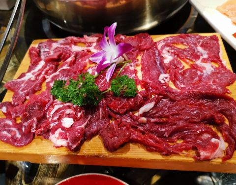 看攻略来打卡的。复古的风格。因为是一个人来只点了四个菜一个甜水。一米牛肉是48元。只有8片肉。午餐肉和海白菜都不错。