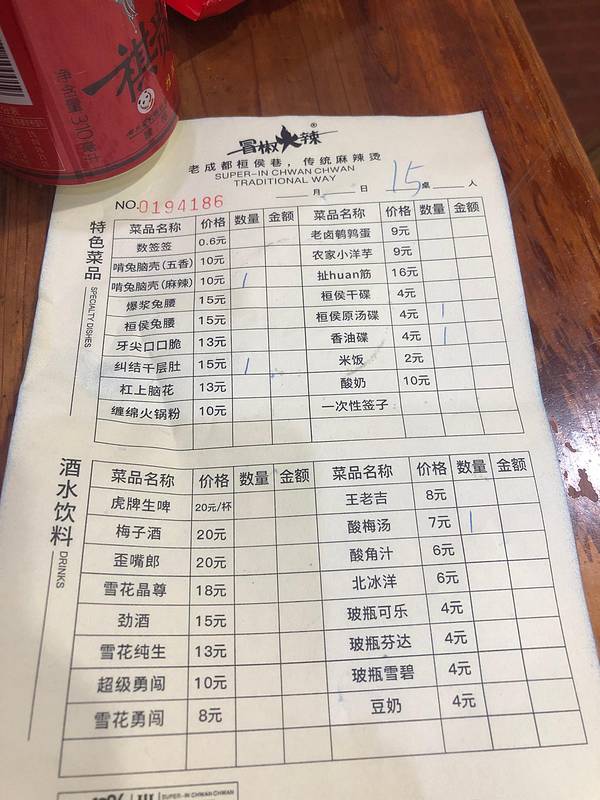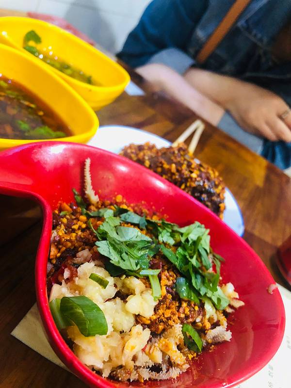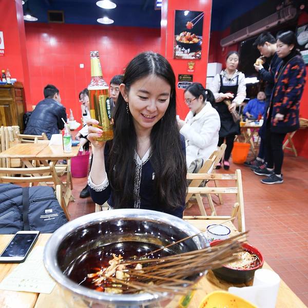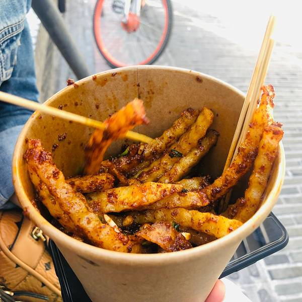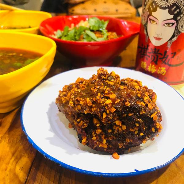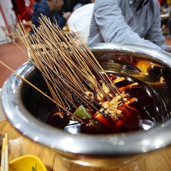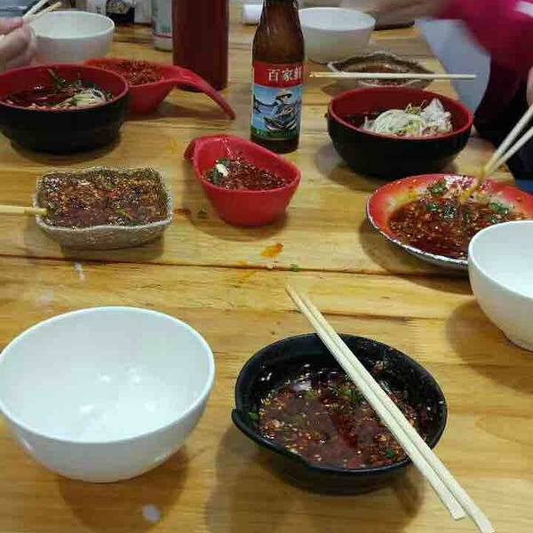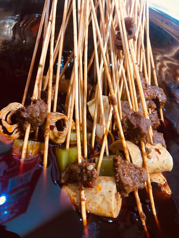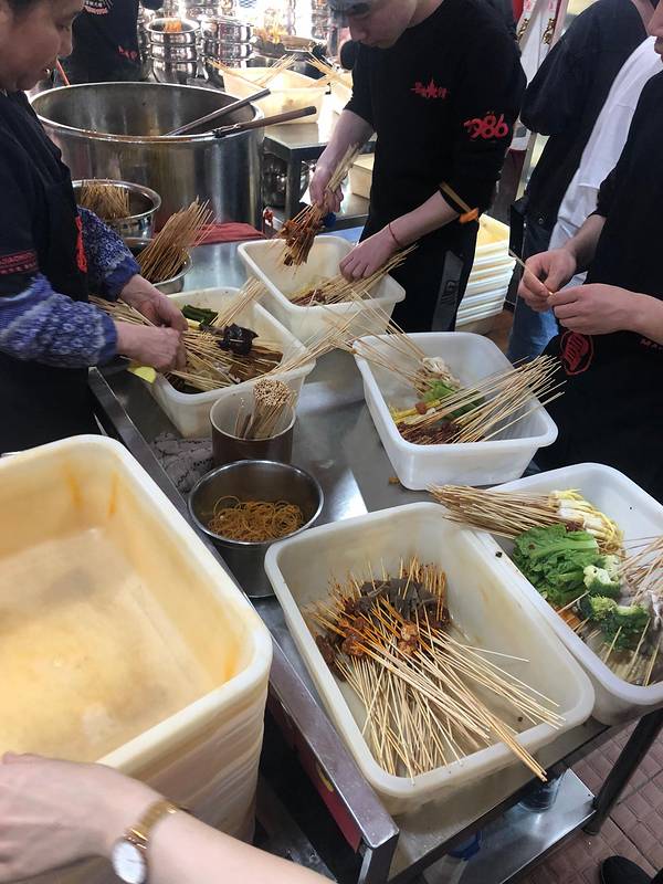 第三站冒椒火辣,来成都必须吃什么,串串啊!!! 冒椒火辣的串串非常有名,从宽窄巷子步行就能到,实在懒可以骑车。进入店里就能感受到那种火辣的气氛,人超多辣椒油味超香。尝试了麻辣兔头,味道超好不过没什么肉。拿串串的人特别多还可以单点一些东西麻辣兔头