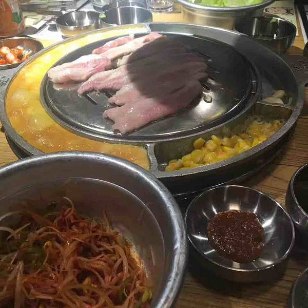 ...面有饮料可以自取,但是没有冰淇淋,烤的素菜和荤菜都放在冰柜里的,很新鲜,烤的五花肉和肥牛都不错