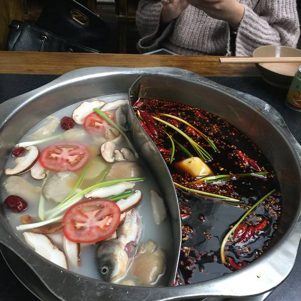 下午的火车回重庆搭机,那就吃一顿正宗的成都火锅吧,看看跟重庆火锅的差别,这家店的评价不错,服务也不错,价格有点高,俩人吃了175,但菜品挺新鲜的,味道也很不错大门挺古色古香的送的蚕豆很好吃,终于看见香菜了,这几天次火锅只看见了麻油和大蒜,今天终于有亲切的香菜了,哈哈哈鸳鸯锅里居然有鲫鱼,好神奇推荐牛肚,茼蒿,鸭血这里推荐山药和土豆,土豆不用说,就是个涮火锅的最佳配菜,吃点山药助消化也是不错的