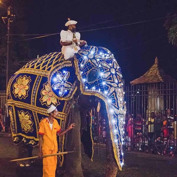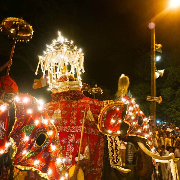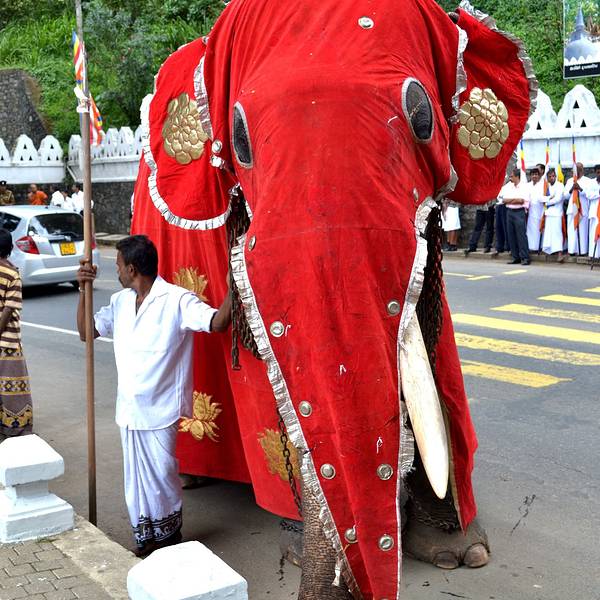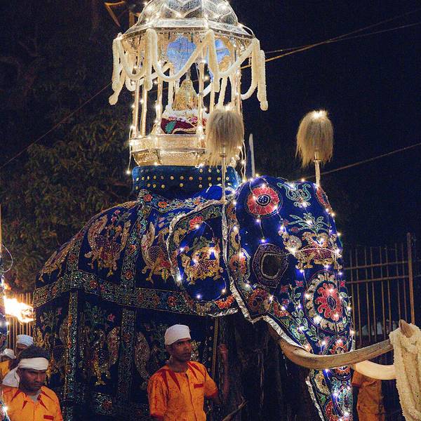一年一度的斯里兰卡佛牙节是佛教最盛大的节日之一。活动开幕当晚,数十支盛装打扮的大象会在一只名为Maligawa Tusker(康提最后一个国王的大象的名字)的领头象的带领下华丽出场。Maligawa Tusker从鼻子到脚都装饰着精致的镶边织物,背上载着巨大的华盖,下面安放着盛有神圣佛牙舍利的神龛复制品。象队会巡游全城,让民众分享佛牙荣光。