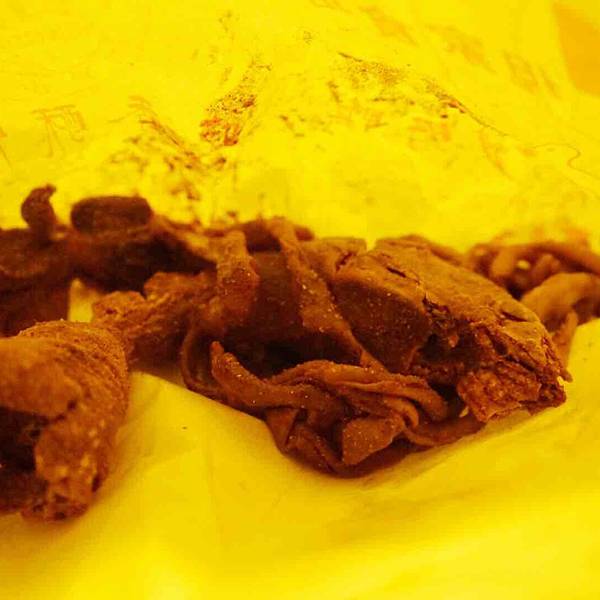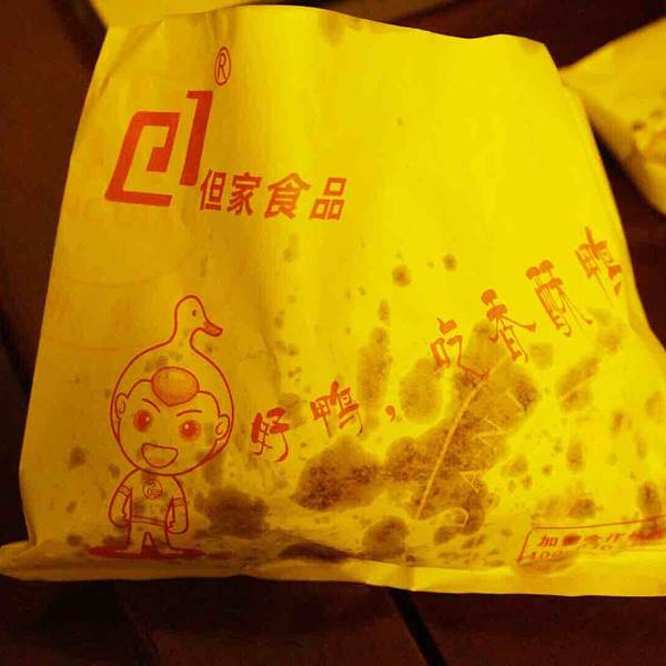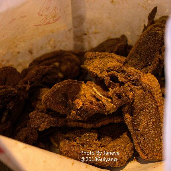 从 花溪 湿地公园走到 花溪 公园需要通过一条地下 通道 ,而地下 通道 两边都是诱人的美食,于是我又招架不住了。 但家香酥鸭是 贵阳 非常知名的一道小吃,创立于1987年,如今已在 贵阳 城里开满了分店。 制作但家香酥鸭首先要挑选五六个月大肥瘦适中的鸭子,把腌制好的鸭肉用秘制香料进行卤制,在食用前再放入油锅酥炸。酥炸后在鸭肉上撒上辣椒粉、花椒粉、精盐等佐料,鸭肉鲜麻酥脆,清香回味。特别注意的是鸭肉一定要趁热吃,才能享受到它最美好的味道。 可惜这道小食依然不太合表锅的口味,鸭肉炸的太干,辣椒花椒的味道又太重,整体口感已经完全失去了鸭肉本身的肥美,而且买来的部位全是净肉,我最爱的鸭翅膀、鸭头、鸭脚等全都没有,所以我并不是很喜欢。