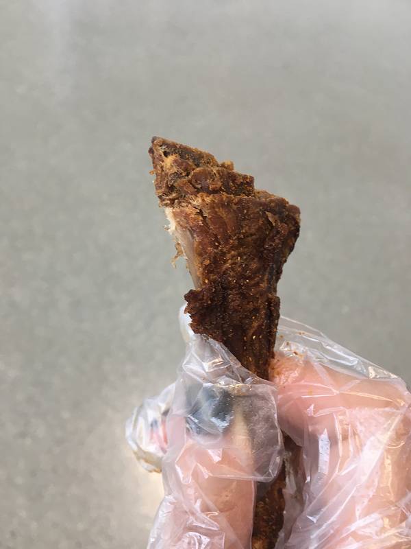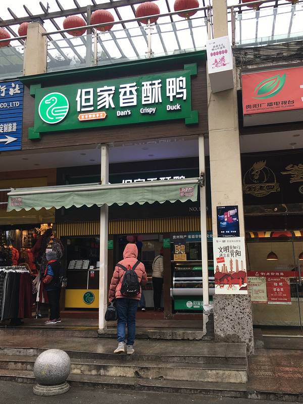 早上起来已经七点半了,中午的飞机,所以第二天也安排不了什么行程了,赶紧吃顿美味的早餐买点东西就要赶去机场了。早餐就在酒店附近的小店里吃的,看到很多当地人在里面吃,老板也很热情,特意提醒我们吃他自己炸的干辣椒。花溪牛肉粉,早餐吃的这家店,好吃!粗粉,当地人也叫酸粉,老板还建议我吃细粉,说外地人会吃不习惯,可是去一个地方不就应该体验当地的美食吗,我坚持要粗粉,我觉得很好吃啊,就是它的质感比较粗糙,有点粘稠感,不像细粉口感细腻。这是细粉这边的人确实是很能吃辣,大早就吃这么辣的,而且还把炸辣椒当小菜吃。香脆可口的炸辣椒,微微辣。大油条,偏干,有嚼劲,好吃。看到就想尝试一下当地的油条是什么味道,所以在吃完了一大碗牛肉粉的情况下又吃了一根大油条!最近不长胖才怪了。吃完早餐就去买鸭子了,这也是一个连锁,离我们最近的就是黔灵山公园店了,于是就去了这家店买香酥鸭。买完鸭子我们就打车去机场了,师傅看到我们拎的香酥鸭就建议我们赶紧趁热吃,说香酥鸭凉了不好吃,怕我们在车里吃不好意思,确实是刚吃完早餐真的好撑,我们说去机场再吃。但家香酥鸭—贵州特产但家香酥鸭还是非物质文化遗产哦香酥鸭,就是炸鸭,味道可以,香脆可口,就是有点油腻。香酥鸭包装,香酥鸭是麻辣口,把花椒放在油里炸,吃多的时候嘴唇特别麻。买的2人份套餐,半只鸭子,两串鸭皮和两只鸭脚,42元,价格还可以。鸭腿,炸得有点过了,肉质紧实,味道不错。炸的时候服务员会问要不要炸脆一下,要不要放花椒,可以根据自己的口味调整。