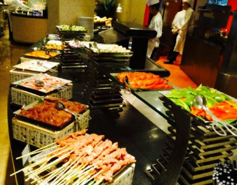 餐厅环境很好,温馨舒服,服务也周到热情,自助菜品很丰盛,做的也很精美,烧烤,小火锅,卤菜,拉面,甜点,水果,沙拉,刺身海鲜应有尽有,海鲜也很清新,喜欢蟹脚,扇贝,生蚝,三文鱼,质量很好,还有我非常...