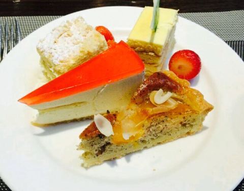 经朋友的多次推荐,抱着跃试的心态品尝了这边的特色甜品及菜色,为此有了以下的体会(此评论非刷好评,但是给吃货们感受提供一处地),1,交通不错,临近各处路线,地理位置较为显眼,环境气氛很好,2,菜品味道极佳,非常推荐自助餐和糕点,值得尝尝,再有一点,服务质量也不错,服务也很及时,笑脸相迎,总之心情会很好。