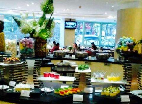 君乐酒店是一家很大型的高档酒店,有配套的自助餐厅,陶乐餐厅环境不错,菜品很多,从冷餐,热食,糕点,饮料都很丰盛,服务业都不错。