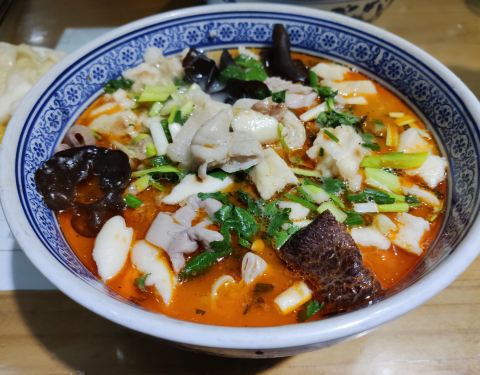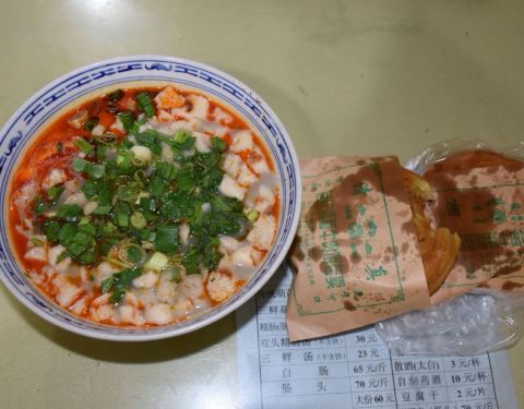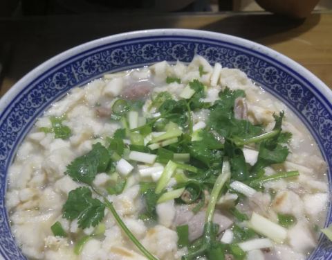 - 【口感】里面的馍很虚,一泡即软,绵软,然后大肠的口感是Q弹软嫩,这两个食物相结合实在是太妙了