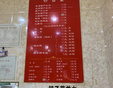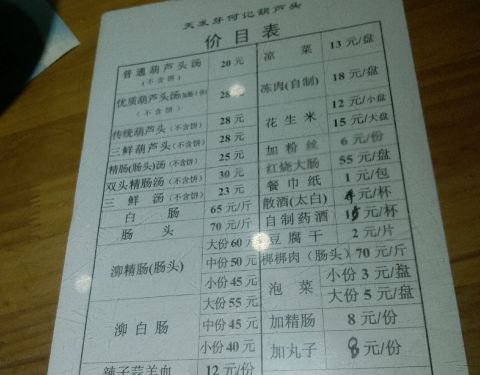 第一次吃葫芦头 听当地人说吃葫芦头要配着生蒜吃 不要吃糖蒜 否则比较容易腻 天发芽的葫芦头味道自我认为还是不错的 大肠处理的也比较干净 感觉不到别的异味 自我推荐普通的就可以了 里面给的肠很多了