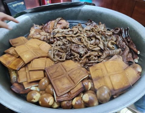 - 那些卤味看起来就很赞哦,颜色是很深的酱色,感觉都很入味。 蛮不错的一家店。馍需要额外点,汤都不含馍