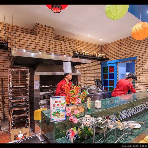 如果连着吃三顿徽菜大家会不会倒胃口,我想答案应该是会的,所以今晚我们决定换换口味。走进了位于黎阳巷口的阳光里约-这是一家开在黄山屯溪的自助式巴西烤肉店,没错,这是真的。但是,不知道是不是因为我已经太久没有吃到过巴西烤肉了,觉得这里特别的亲切,美食是那样的诱人,好吧,也许骨子里我也是个吃货,只有这样的自助餐才能更好的满足我味蕾的需求。没错,你看到的是酒,而且是白酒,这绝对是在任何一家自足餐厅不多见的,白酒配烤肉是不是更棒呢? 自助餐的门市价格是95/人,目前优惠价格88,会员价75 ,限时两个小时,好吧我想说按照现代人的饮食标准,你绝对是吃不到2个小时的,很可能一个小时就饱了,所以如果刚从黄山下来的游客,千万不要错过这个黎阳巷口的巴西烤肉店,性价比超高的。甜品虽然不多,但是也算精致,好吧,我又罪恶了~还是多留点肚子吃肉吧~翻滚吧,叉子~飞舞吧,肉串....这一餐吃的好饱....