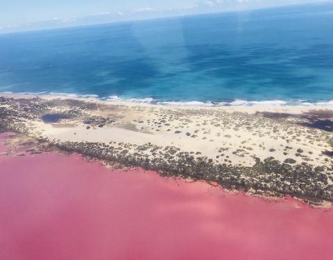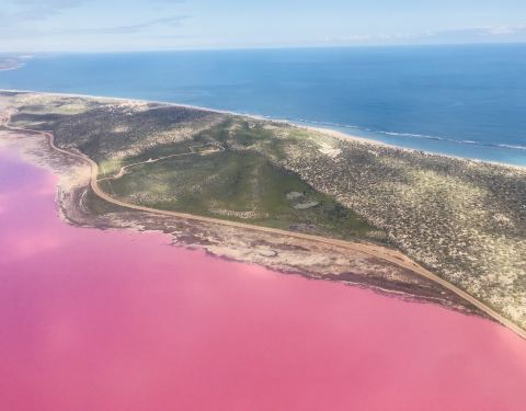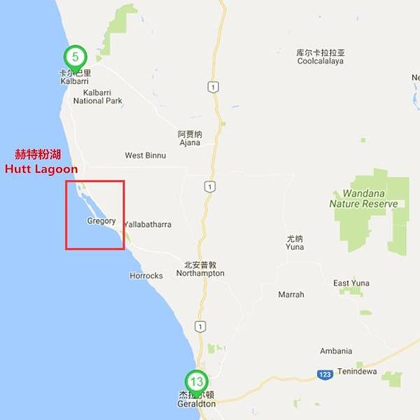 自驾,导航Hutt Lagoon 或从杰拉尔顿乘坐观光飞机前去,无公共交通。