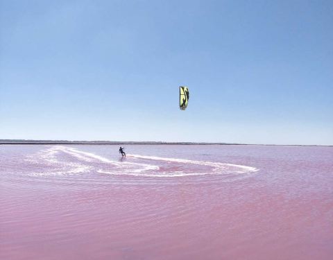 所以观赏粉湖一定要选阳光充足,万里无云的时候,效果最佳哦!很好奇在如此高的咸度之下依然有生物存活离开“小 非洲 ”区域,我们终于跟着导航来到格雷戈里(Gregory)小镇,看见了日思夜想的赫特粉湖(Hutt Lagoon)。在兰蔻口红以这里为背景拍摄广告之后,Hutt Lagoon成了西澳的另一张名片。Happy刚看到粉湖的时...离开“小 非洲 ”区域,我们终于跟着导航来到格雷戈里(Gregory)小镇,看见了日思夜想的赫特粉湖(Hutt Lagoon)。在兰蔻口红以这里为背景拍摄广告之后,Hutt Lagoon成了西澳的另一张名片。Happy刚看到粉湖的时候,立马开启了十万个为什么模式。其实对于它,我也有很多疑问, 比如 为什么会是粉色?为什么有的人说粉有的人说不粉呢?Hutt Lagoon粉湖Hutt Lagoon曾经是60公里长的Hutt河的入 海口 ,但在史前,Hutt河改变了河道,之前的河口被沙洲所孤立,就形成了一个独特的湖泊生态系统。Hutt Lagoon面积为2500公顷,长14公里,宽2.3公里,湖面低于海平面,由环绕着的海滩沙丘把它和 印度 洋隔离开,水量来源于稀少的降雨、海水向内渗流,并通过几个小溪流补充。即使在一年中多雨的季节,Hutt Lagoon也很浅,只有约1米深。Hutt Lagoon粉湖生长在粉湖里的植物,都裹上了厚厚一层盐霜。很好奇在如此高的咸度之下依然有生物存活~Hutt Lagoon粉湖连躺在岸边的枯木,只要一头挨着湖水,也要蒙上一层盐。Hutt Lagoon的成因缘于湖中的嗜盐藻类在繁殖过程中产生大量的β-胡萝卜素,让湖水泛着一层淡淡的粉红色。β-胡萝卜素也使湖水的盐性增大,所以它比一般的湖泊还要咸。这里每天只有几个小时的充足光照,粉红湖水只有在阳光直射的时候,才能够发出灿烂的光芒。下午的时候,湖水就会很快变成银色。所以观赏粉湖一定要选阳光充足,万里无云的时候,效果最佳哦!Hutt Lagoon粉湖粉湖还有一点很神奇,那就是在岸边近距离拍摄时,湖水又变成胡萝卜色的,也许跟岸边混合着黄色的砂石有关系~Hutt Lagoon粉湖像云朵一样漂浮在湖面的盐石。Hutt Lagoon粉湖在盐湖上觅食的小鸟。真是再不可思议的环境,大自然也总有一套对应的生物链,生生不息,复始循环。Hutt Lagoon粉湖Happy,你这是给我一个背影让我慢慢体会吗~Hutt Lagoon粉湖Hutt Lagoon粉湖走在混合着沙土的粉白色盐霜上,感觉就像走在粗糙的雪地里,小小心心,生怕一脚踩进空心盐坑·~Hutt Lagoon粉湖 展开