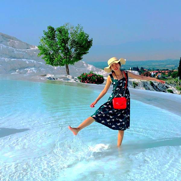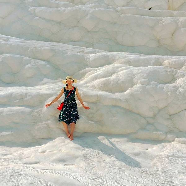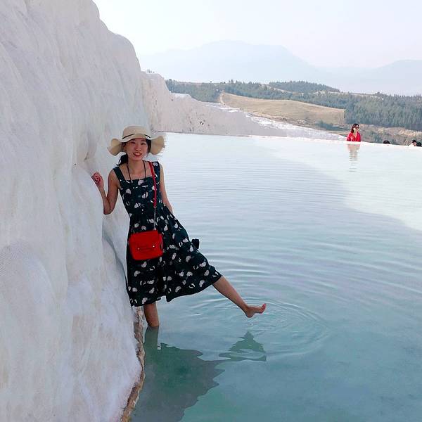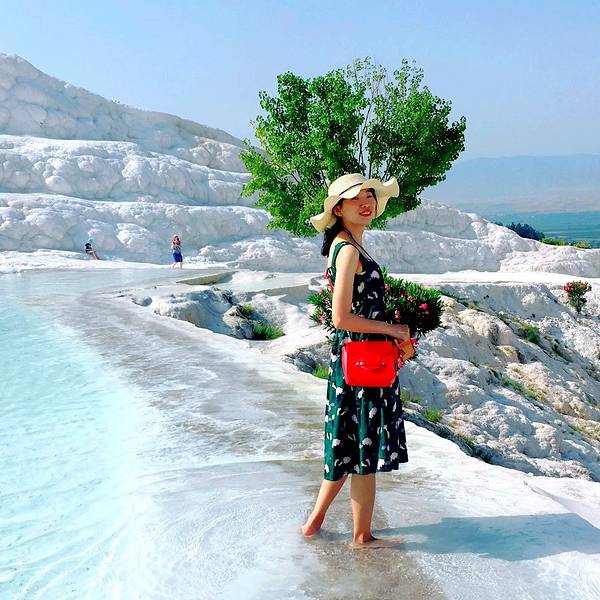 🔸在水天一色的棉花堡上,女生最好穿上颜色鲜艳或洁白的长裙,在这美如天境的背景下拍照,分分钟都是大片产出,不要吝啬笑容和pose噢