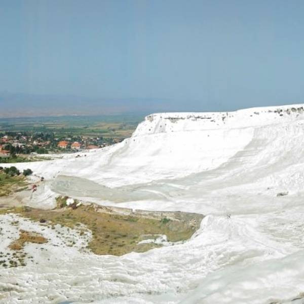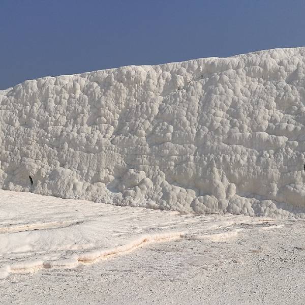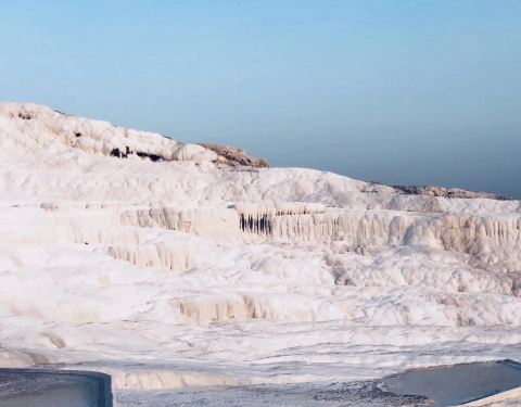 🔸棉花堡有个美丽的传说:曾经,牧羊人安迪密恩为了和希腊月神瑟莉妮幽会,竟然忘记了挤羊奶,致使羊奶恣意横流,盖住了整座丘陵,而造就了雪白似棉花的棉花堡。