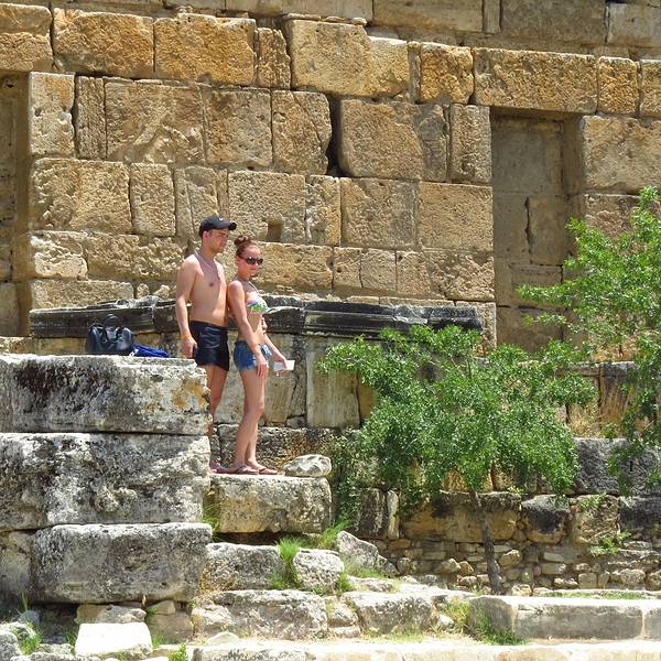 由于 棉花堡冰蓝泉水 与 埃及艳后冷泉池 的关系,造就了大量穿着比基尼的帅哥美女,直接跑到历史古迹中游览研究,算是比较特别不常见的另一道风景线吧~