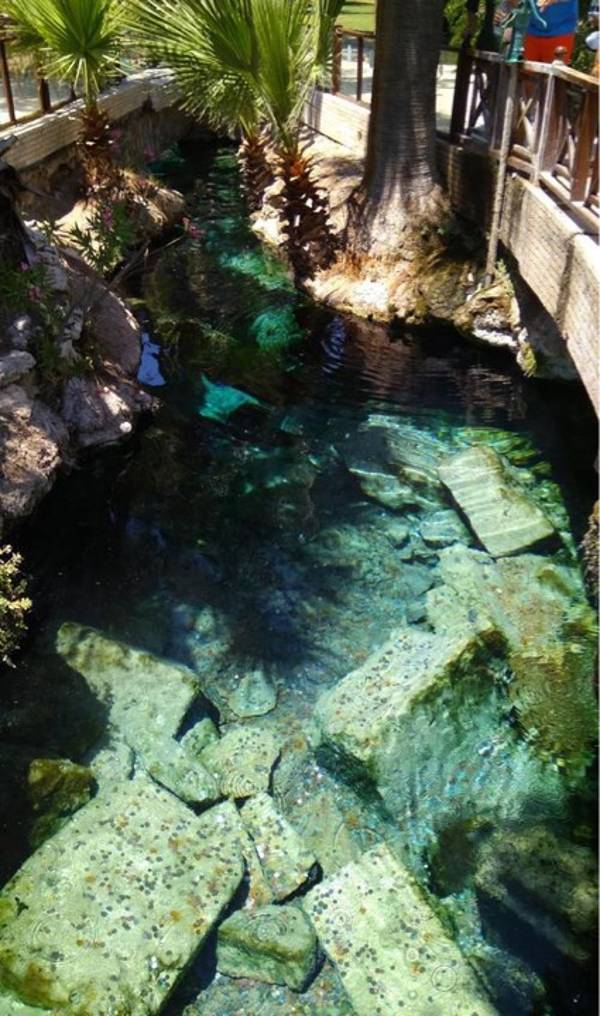 这是一块很妙的地方,清澈净透的泉水,将古罗马遗迹倒塌后的残垣淹没,而你能游弋在罗马遗迹之中,古迹、泉水、绿植、游弋的人儿,组成了绝佳美景,也形成了炎热之下绝佳的清凉避暑圣地~