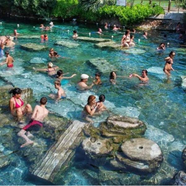🔸在温泉池子的底部,布满了各种罗马时期废墟散落的大理石柱子、雕花石梁、石墩子等,一边泡着神仙水般的温泉,一边近距离接触历经千年的古董,这体验也是很稀奇特别呀