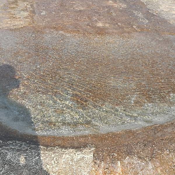2、尽量要踩白色部分,白色部分不滑,水中黑色、绿色部分滑的很,但是水都不深,旁边的小沟槽很适合泡脚。