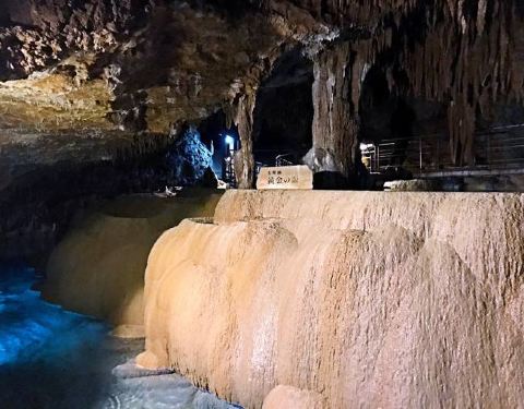 玉泉洞是冲绳第一、日本第二大的钟乳石洞,也有东南亚最大地下美术馆的称号,玉泉洞的钟乳石是冲绳独有的珊瑚礁,30年才能长一公分,在30万年悠长的岁月中,慢慢形成今日模样,在灯光的照射下,更显的斑斓绚烂,充满独特的美感。洞内气温约21℃到24℃,可以舒适地参观。洞内98万支的各式各样的石笋钟乳石,加上灯光投射,有如进入奇幻的神奇世界。另外在玉泉洞外,可以观赏到民间大鼓队及丰年祭舞蹈表演,还有琉球传统手艺和小吃。