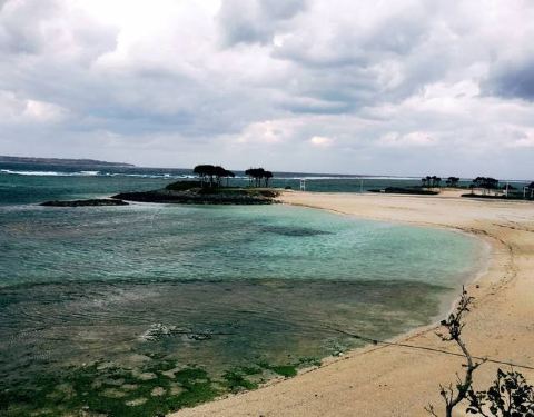 翡翠沙滩---the pearl beach,是给冲绳北部海洋博公园里面的一段沙滩命的名。实际上这条岛北部的沙滩非常的长,一直从公园的西侧延伸过来,覆盖了整个公园的北侧沿海线,又一直延伸穿过了公园东门,并且覆盖了公园东侧的猎户座本部酒店,并且还要一向着东边延伸,中间会有几处中断,例如公园里面延伸出去的礁石,还有一些岸边的不是沙滩,而是一些青苔,这些都没法立足,需要借道公园的道路或是猎户座酒店的道路。不过在凉爽的早晨,沿着这一段沙滩,来回跑个几公里路,是完全没有问题的。沙滩在公园范围内的一段有如下配套,岸边的洗手间,堤坝,休息石阶,公园小卖部等等。在猎户座酒店一侧交界处的一段则有一条彩带造型的长廊,还有数把沙滩椅可供游客歇息拍照。加上透蓝的天空,碧绿的海水,洁白的沙滩,歇息躺椅上,看着漫步沙滩的本地情侣,学生,家庭,还有大批慕名而来的中韩台湾香港游客,觉得时间好像静止了一般,远离了一切繁华喧嚣,远离了水族馆内和海洋博公园内的游客,别有一番感觉。这里湛蓝翡翠色彩分层的海水,洁白的沙滩,堪属于亚洲顶级,而且免费,不像三亚那样的亚洲5流的海边沙滩,还给某酒店包起来分段收费;那霸市区或是美国村到翡翠海滩的公交线路(和博公园一致):120路车到名护Terminal转65,66,70路车到博公园下车。不过要赶早,路上时间在2-3小时不等。包车、拼车或是报名当地1日游,对于多人的家庭来说也是非常不错的选择。