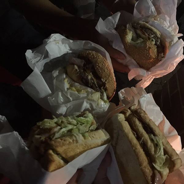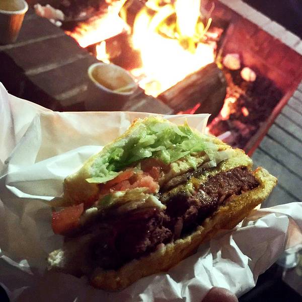 汉堡很大,给的肉会很多,吃不了可以包起来带走。他家提供的座椅全在外面,晚上坐着可以烤火,不过位置不多所以很有可能会站着吃。