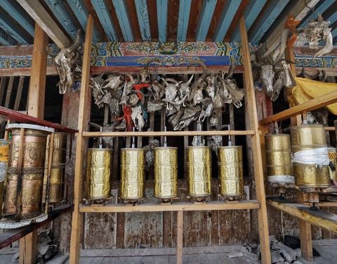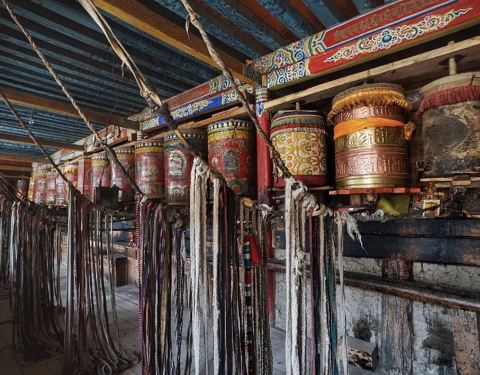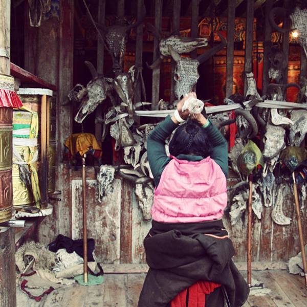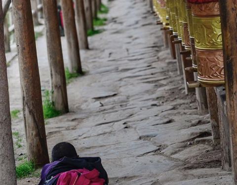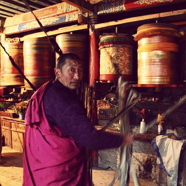尼巴村在山沟的深处,是一个已有百年历史的传统藏寨。最让人难忘的是村中的佛寺,转经的人络绎不绝,有刚干完活还拿着锄头的,有身背转经匣的,更多的是老人,当地人告诉我们,很多老人一辈子也没离开过村子,只要有时间就会来转经桶、磕长头,他们大多长寿,大概就是因为心无杂念吧