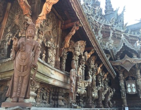 尤为重要的是相比于其他景点这里沉静,肃穆,庄严,而且四面面朝大海,景色非常之美。非常值得一去这是芭提雅最好的寺庙了,全柚木建筑,雕栏画栋,难以计数的人物雕塑栩栩如生,造型别致,每一尊雕像都值得细细品味,按照导游的解释,其中有一组雕塑代表多子多福,情侣可以坐在旁边以祈求子孙延绵,家族兴盛。...这是芭提雅最好的寺庙了,全柚木建筑,雕栏画栋,难以计数的人物雕塑栩栩如生,造型别致,每一尊雕像都值得细细品味,按照导游的解释,其中有一组雕塑代表多子多福,情侣可以坐在旁边以祈求子孙延绵,家族兴盛。尤为重要的是相比于其他景点这里沉静,肃穆,庄严,而且四面面朝大海,景色非常之美。饱经风霜的木质雕塑部分已经损坏,在游览的过程中能看到工人正在有条不紊地修葺。非常值得一去~ 展开