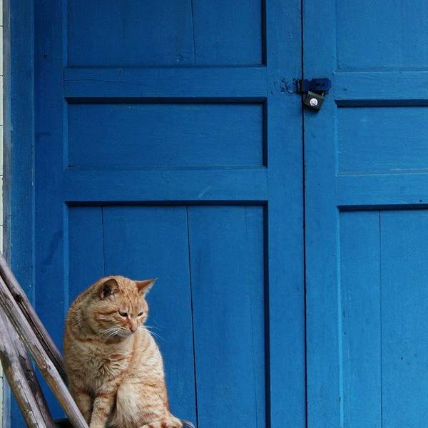 桫椤湖还有快艇可以坐,收费也不贵,好像才30元。这里还有一座碉楼。居民屋门口的猫,配着蓝色木门,好喜欢~ 展开